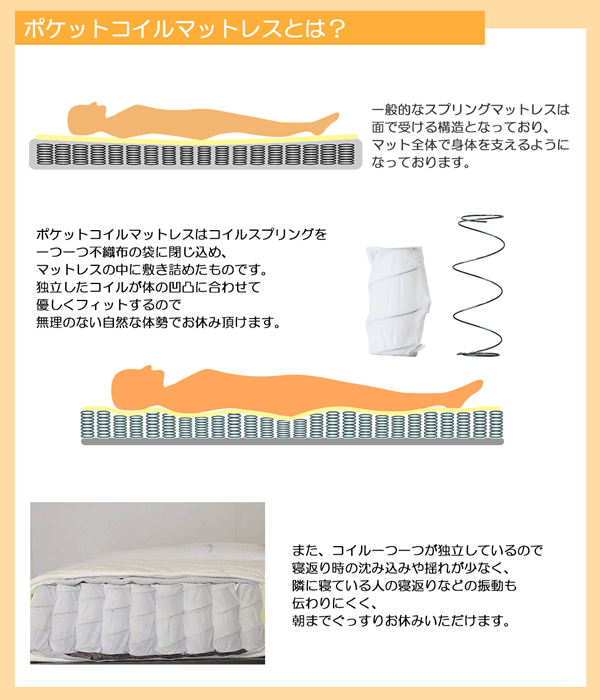 【連結キングシリーズ】マットレスは、独立したコイルスプリングが荷重や振動を「点」で吸収!体圧分散性に優れた寝心地にこだわったマットレスです。